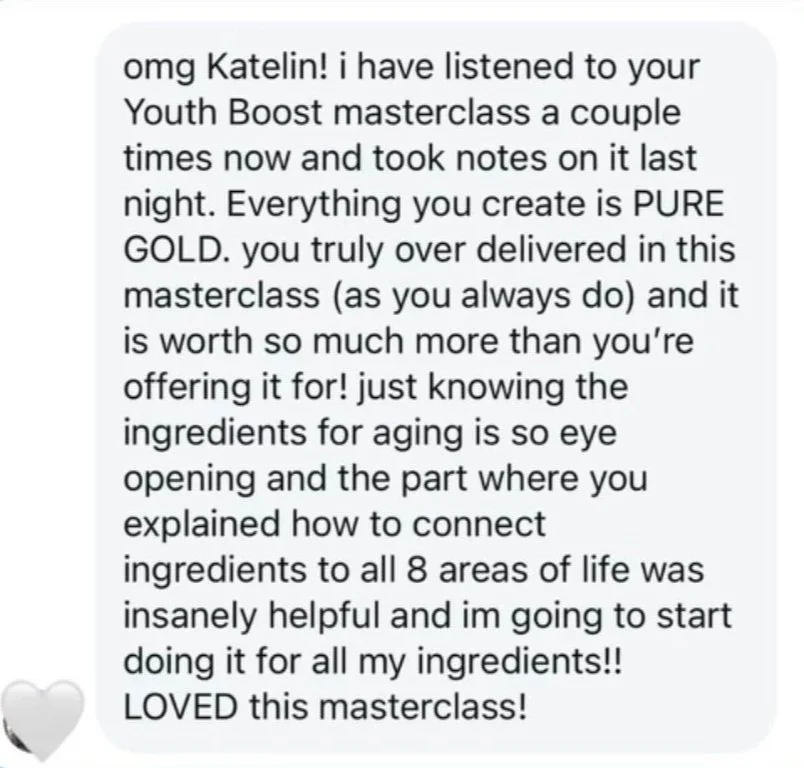 Inside this masterclass, you’ll learn the 4 energetic ingredients of aging so you can finally unmatch from them and stop reinforcing the patterns that are